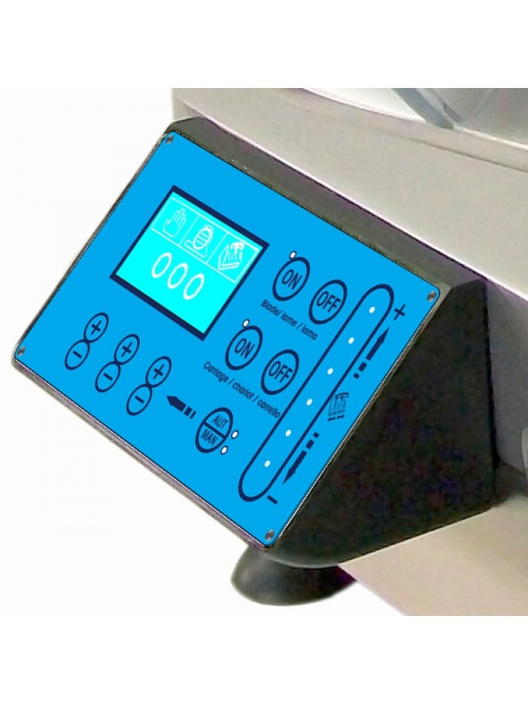 Material bastante robusto e fácil de manusear, componentes de alta precisão para garantir a vida útil do equipamento, regulador de espessura de corte altamente sensível, lamina de aço especial, interruptor start-stop, painel de controlo digital, transmissão por meio de engrenagens, seletor para função manual, automática e semiautomática, função de uso contínuo e braço de fixação oscilante com batente.