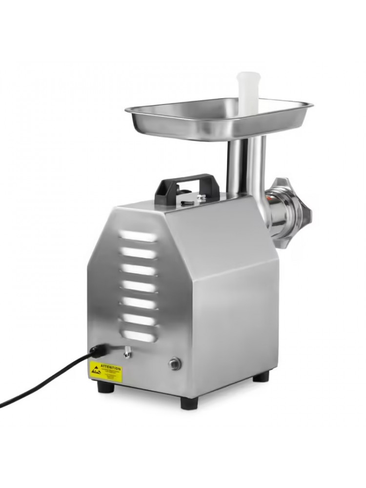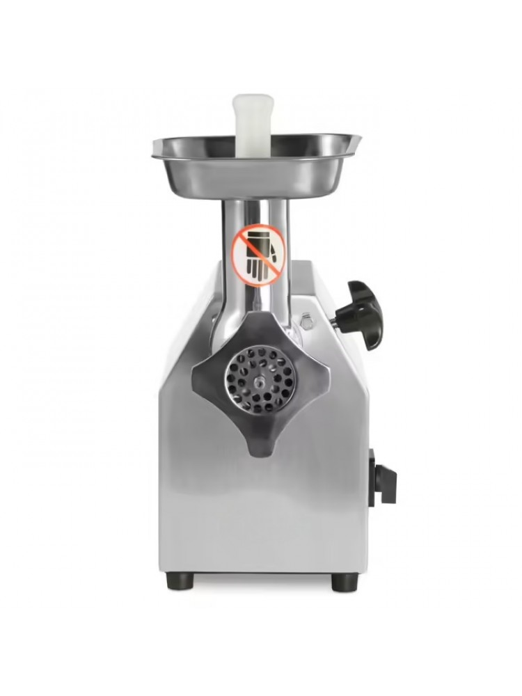 Material construído em aço inoxidável, interruptor de proteção de motor, fácil de limpar e higienizar, engrenagem sem-fim e anel roscado em aço inoxidável, incluí 4 peças de funcionamento (enchimento de salsichas de 20mm, duas lâminas cruzadas e um disco com orifício de 60mm e 80mm) e parte de moagem removível com um só movimento.