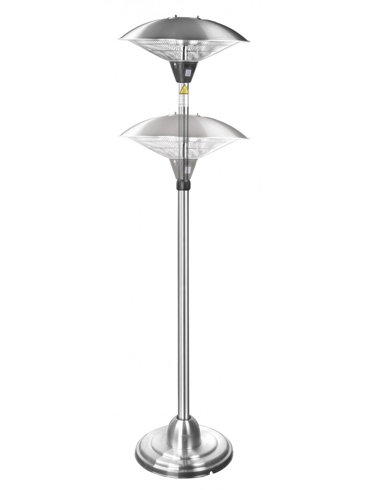 Material concebido para restauração profissional assim como particulares, braço em aço extensível e regulável em altura, aquecedor equipado com lâmpadas halogéneas que produzem calor através de raios infravermelhos, refletor em alumínio e grade protetora.