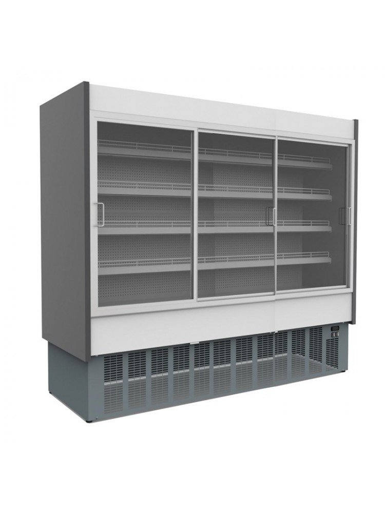 Mural de três portas para lacticínios e charcutaria com sistema de refrigeração ventilada.