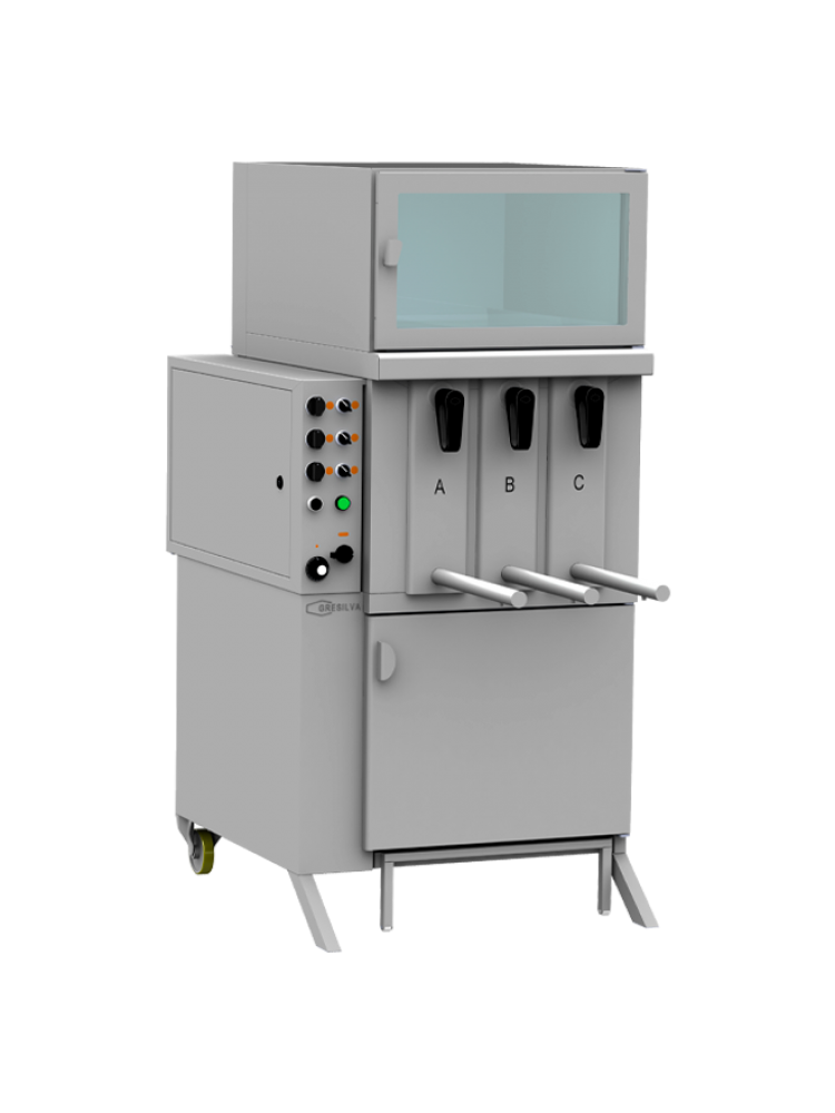 Material construído em aço inoxidável, bastante resistente e robusto, fácil de limpar e higienizar, incluí rodas para facilitar o transporte, temperatura ajustável, controlo independente das gavetas, temporizador sonoro para controlar o tempo de cozimento e baixo consumo energético.