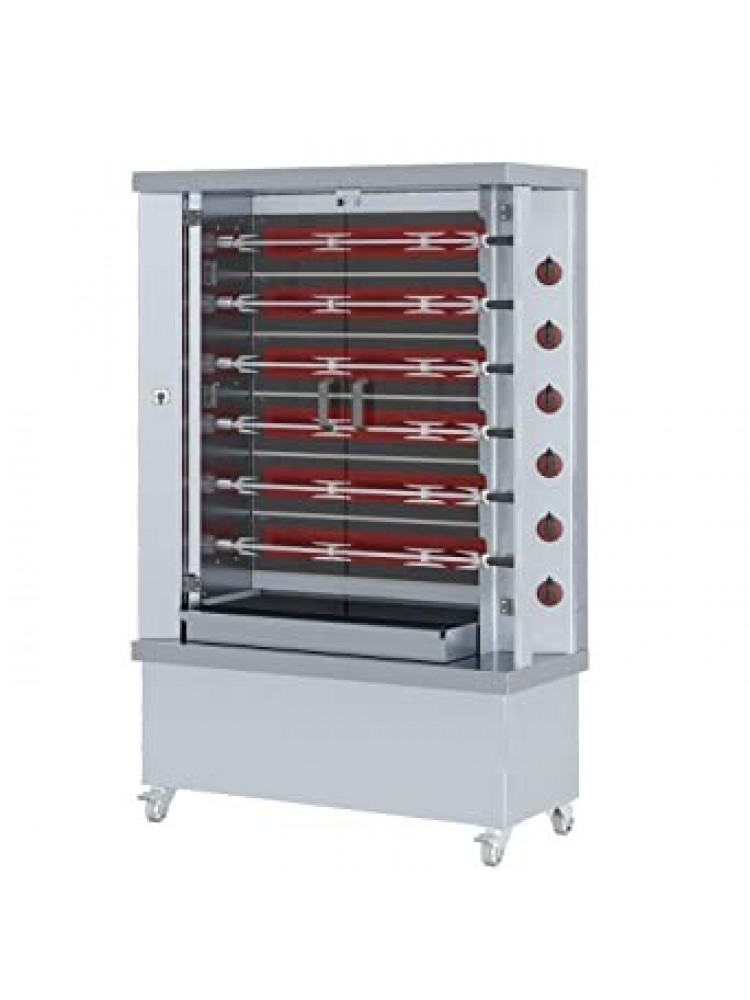 Máquina de assar frangos vitrocerâmica com 6 espetos para 30 frangos.