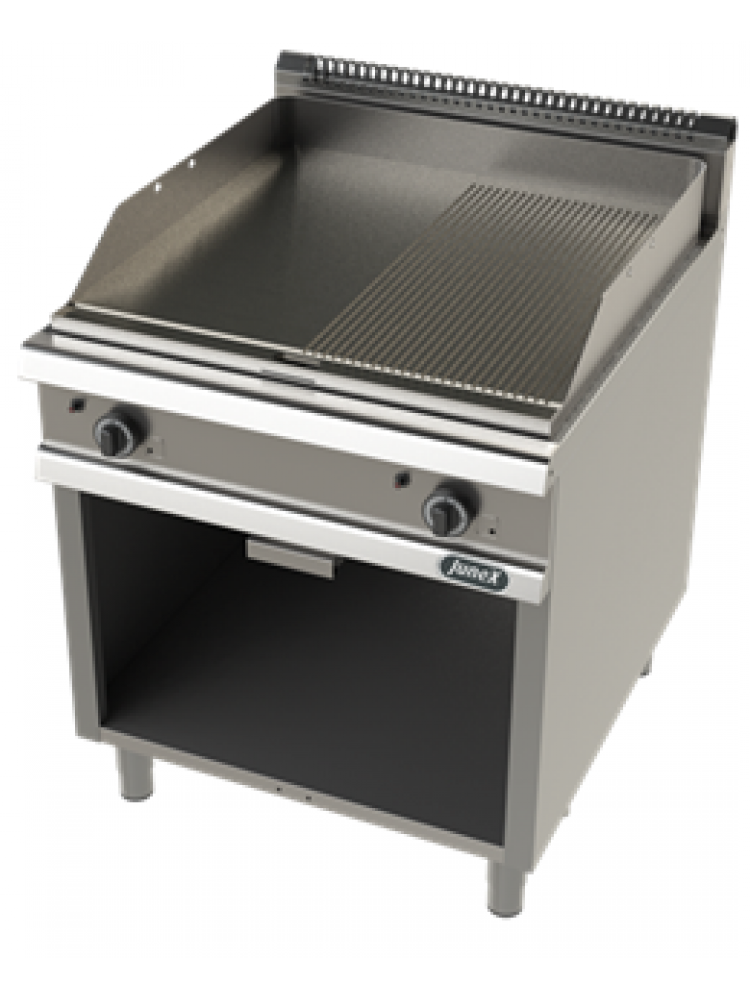 Fry Top/Placa de Grelhar Ranhurada com móvel Junex industrial, ideal para o seu negócio.