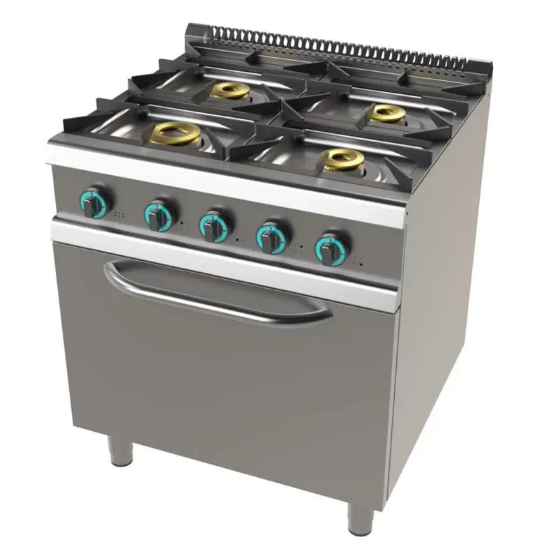 Fogão de 4 queimadores com forno GN2/1 a gás Junex, industrial, ideal para o seu negócio.