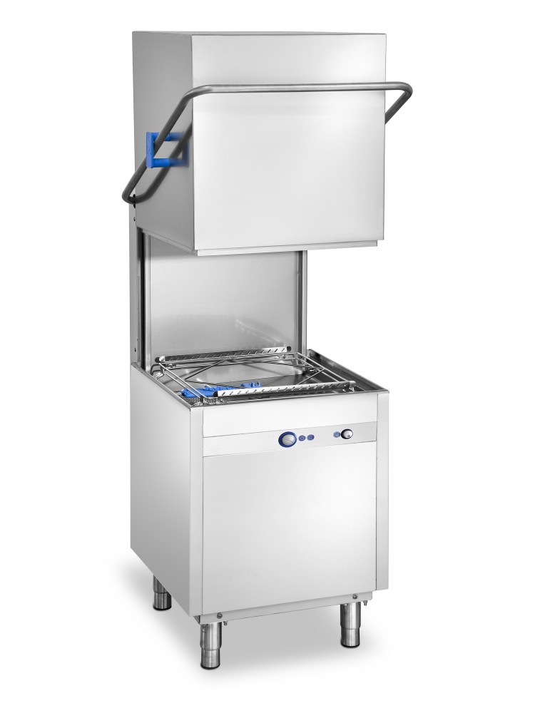 Máquina de lavar louça báscula industrial que está concebida para oferecer o máximo rendimento ao melhor preço.Cesto de 50x50cm.Construída em aço inoxidável 3.04 18/10.Ciclo de 150\\\\\\" regulável.Altura máxima de: 40cm.Sistema de lavagem à pressão: melhor resultado em metade do tempo.Ecológico: baixo consumo de água e luz.Filtro duplo.Dosificador de abrilhantador por bomba.Cuba de 35 litros.Consumo médio de água: 2L/ciclo.Fornecido com um cesto de copos, um cesto de pratos e um de talheres.Especificação