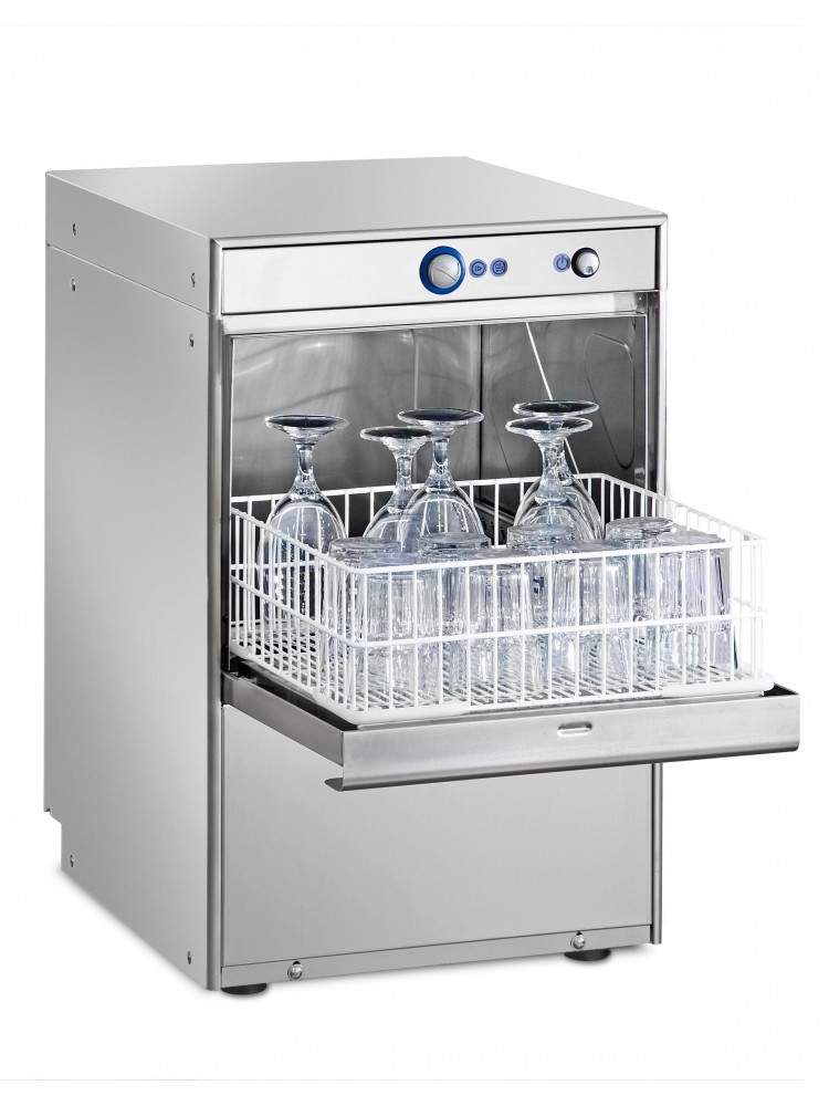 Máquina de lavar louça industrial construída em aço inox copos com cesto de 38x38cm , concebida para um maior rendimento ao menor preço.Sistema de lavagem à pressão: melhor resultado em metade do tempo.Ecológico: baixo consumo de água e luz.Filtro duplo.Incluído tubo de abrilhantador.Consumo médio de água por ciclo: 2L.Especificação