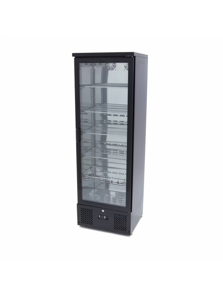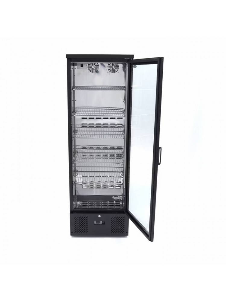 Equipamento perfeito para bebidas, iluminação LED interior, porta com vidro duplo, fechadura, prateleiras ajustáveis, controlo digital de temperatura, arrefecimento através de ventilador e pés ajustáveis.