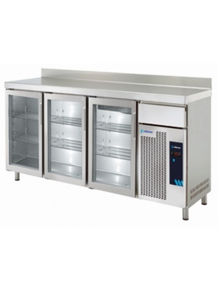 Bancada Frigorífica Ventilada com três portas de vidro industrial, ideal para o seu negócio.