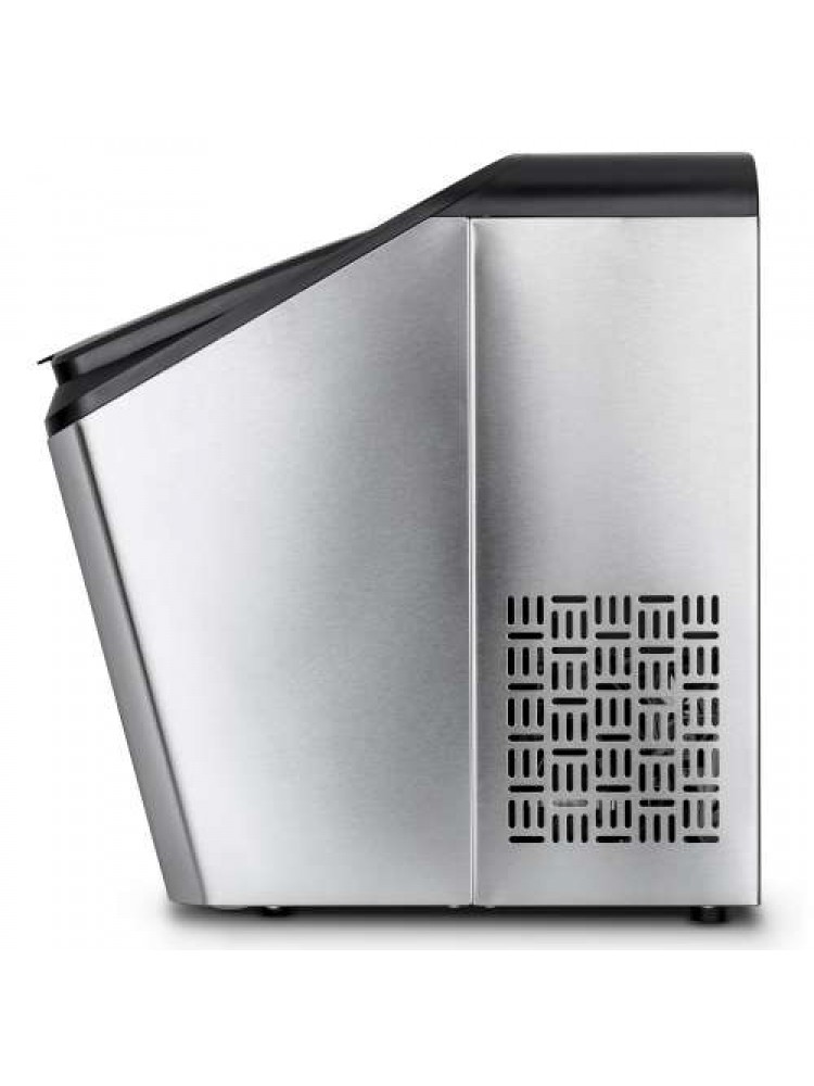Material construído em aço inoxidável, produção bastante rápida (em 10 minutos a máquina produzirá gelo para a cuba removível), possibilidade de ligar à torneira de água ou enchimento manual e possibilidade de escolha entre dois tamanhos de cubo diferentes.
