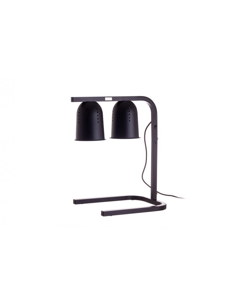 Aquecedor de alimentos industrial duplo preto com altura ajustável, ideal para o seu negócio.
