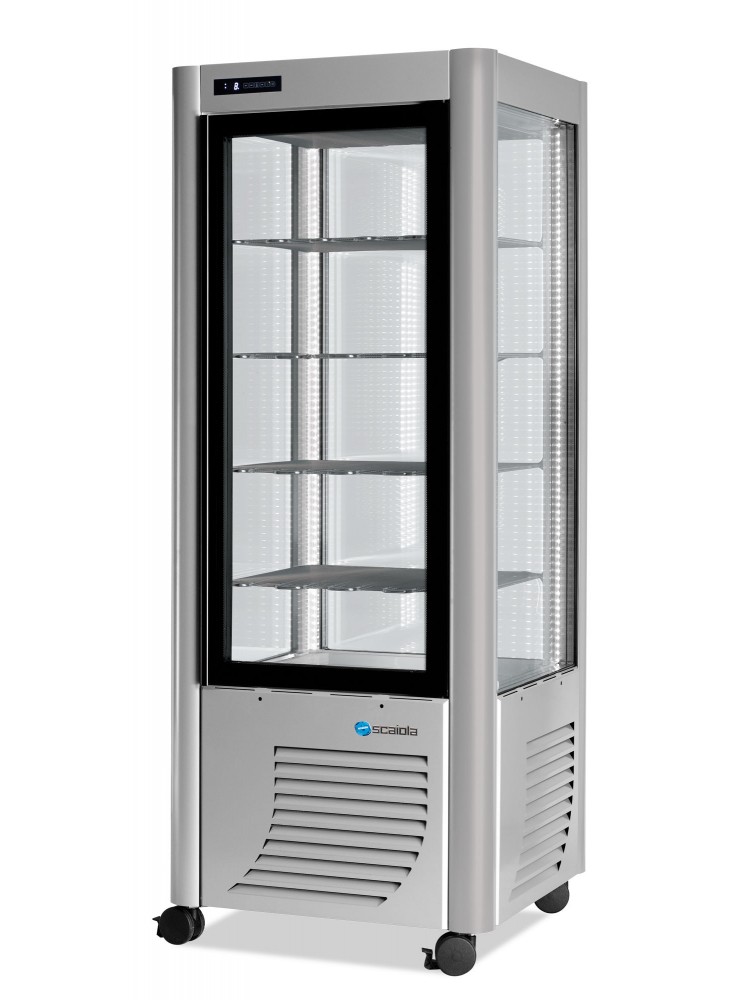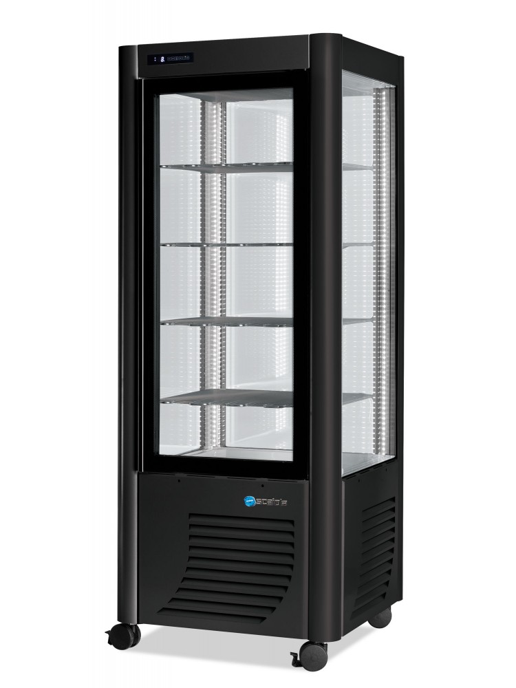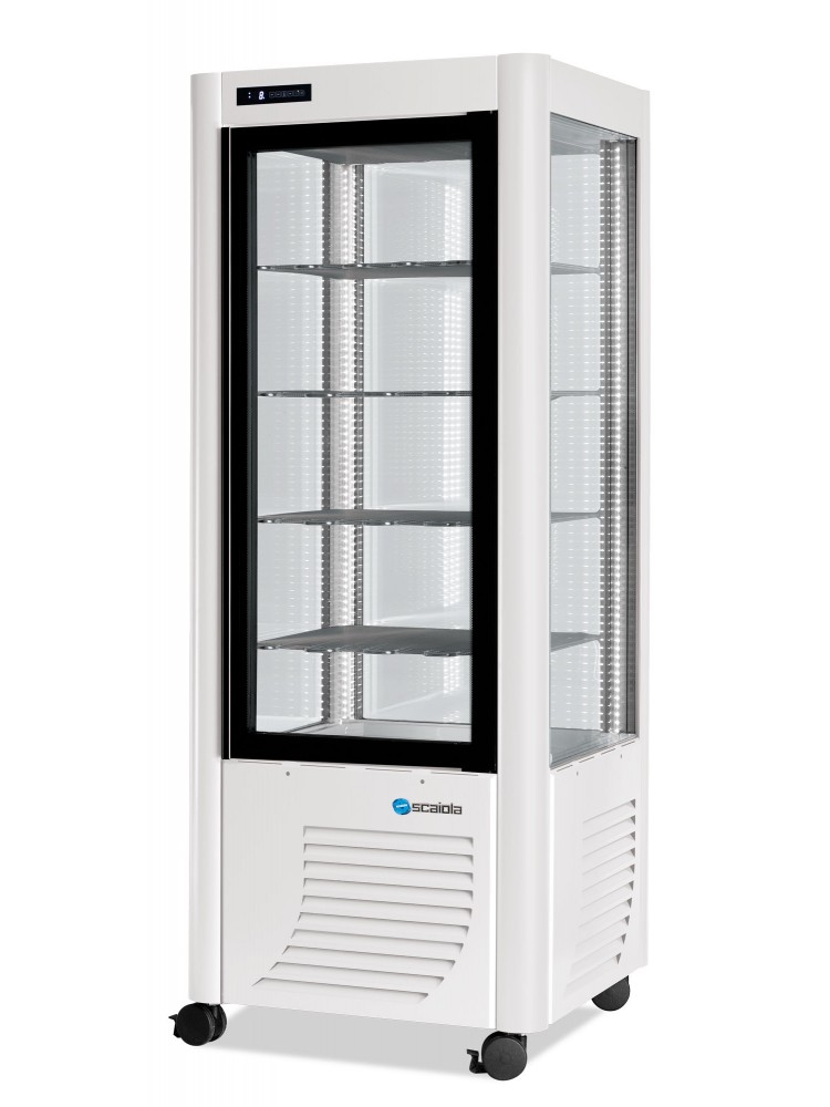 Equipamento ideal para exposição de alimentos com vidros de alta resistência térmica, porta de vidro com puxador invisível a toda a altura, evaporador de grade estática com degelo manual, iluminação interior através de luz LED, controlo de temperatura com termostato digital de toque.