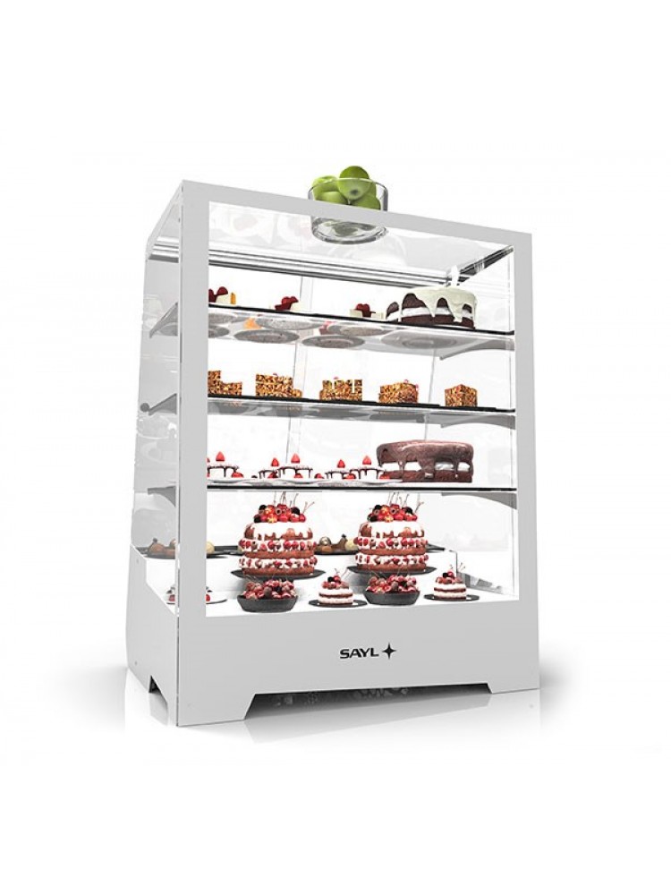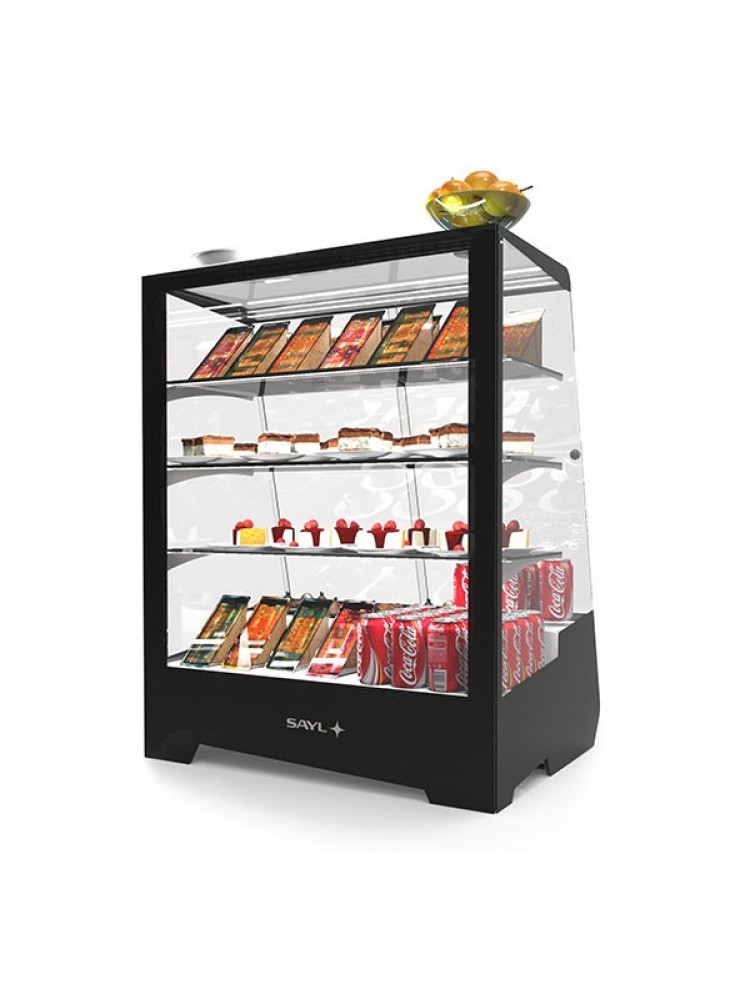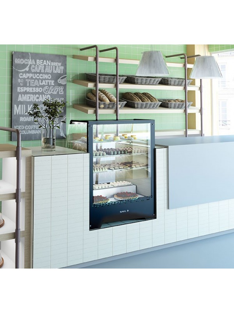 Ideal para embutir ou sobre balcão, construção sólida em aço inox e vidro temperado, três grandes prateleiras de vidro ajustáveis, dois níveis de exposição na base, topo plano com 700x300mm, LEDs de ultima geração de consumo muito baixo, iluminação interior em cada prateleira.