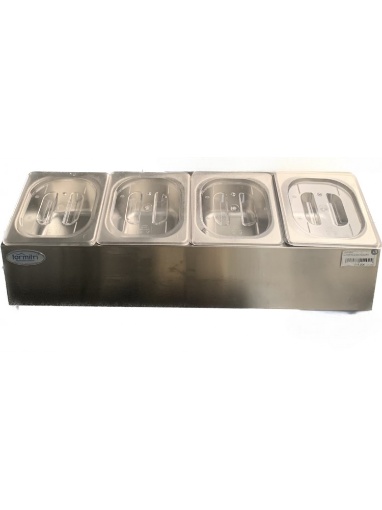 Vitrine Expositora de quatro couvetes para petiscos, ideal para o seu negócio.